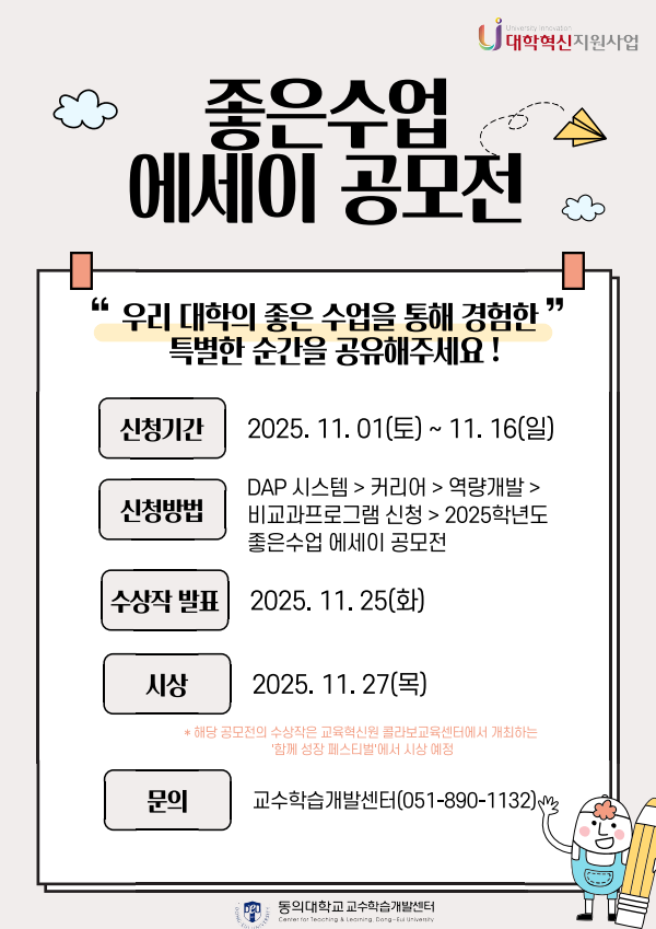 [대학혁신지원사업] 2025학년도 좋은 수업 에세이 공모전 신청 안내